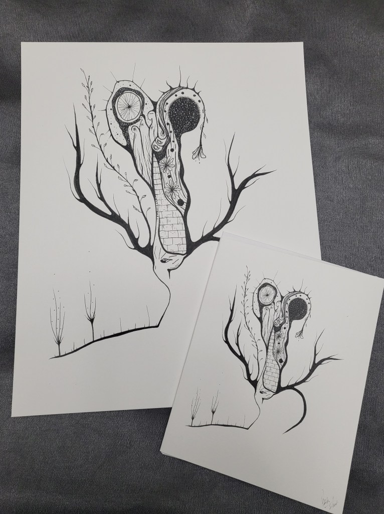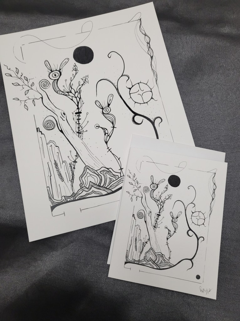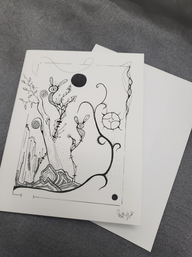 Rose is a self taught artist originally from Northwestern Ontario. She is an intuitive artist that has an unique Perspective of the world. Here is some examples of her work. Available in Cards and 8×10 Prints.